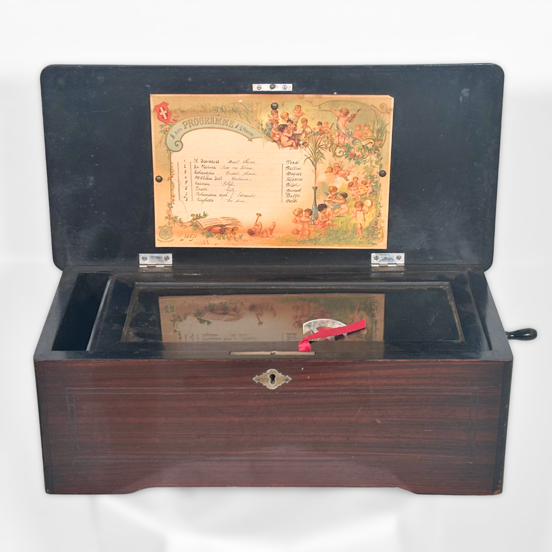 The box shows gentle signs of age consistent with its history, but remains an elegant and fully functional example of Swiss craftsmanship. A wonderful choice for collectors of mechanical music or anyone who appreciates decorative 19th century antiques.