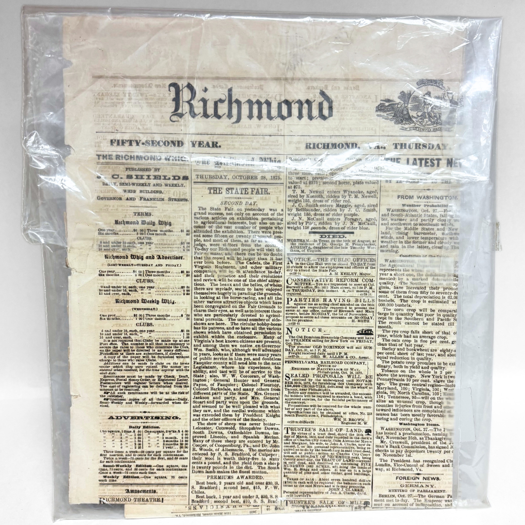 Antique Newspaper: Richmond Whig — October 28, 1875
